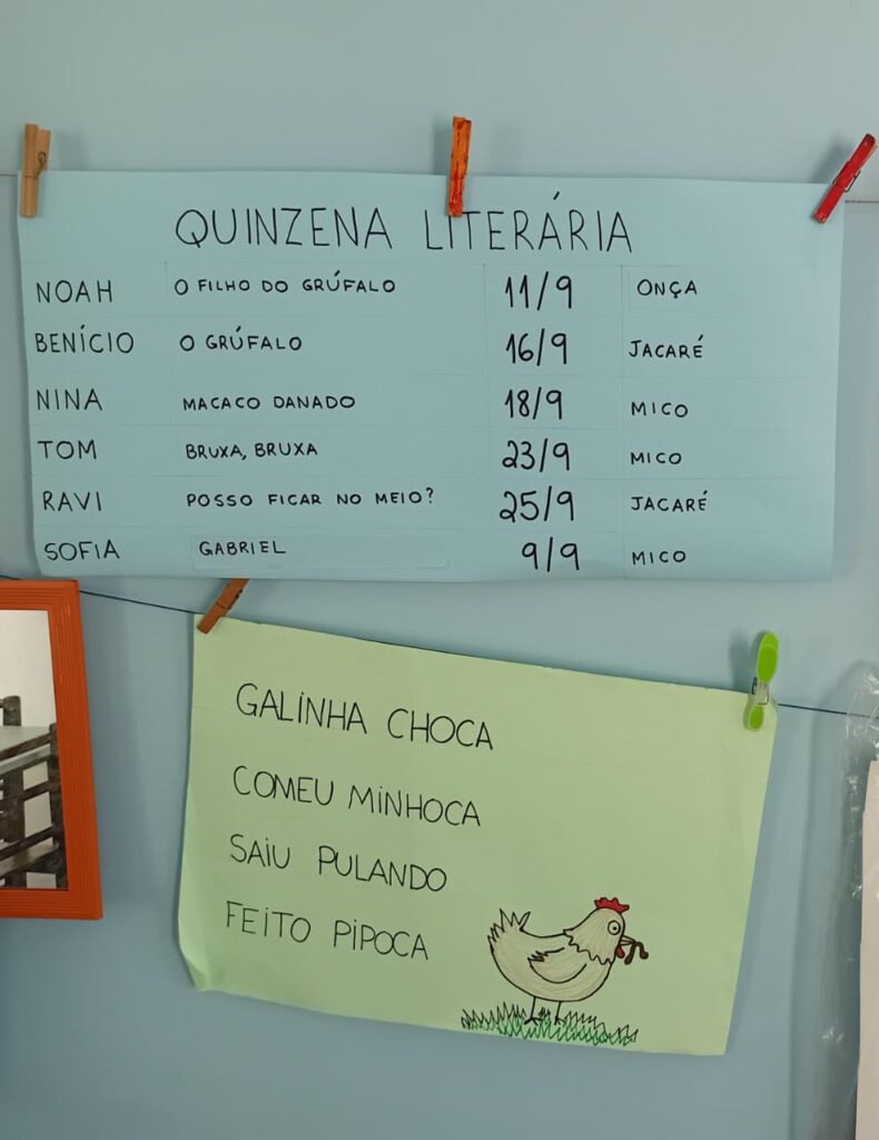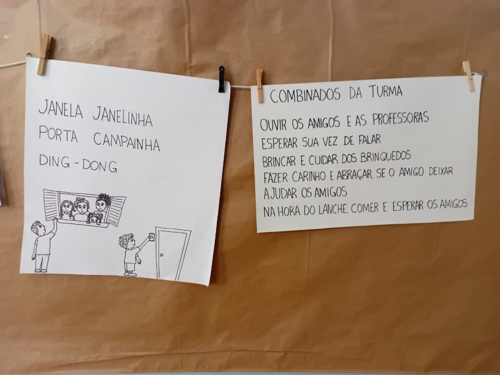 As paredes também guardam combinados, nomes, avisos importantes, músicas, leituras e até registros fotográficos dos nossos momentos. São, de fato, parceiras das nossas propostas pedagógicas.